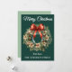 Envíe saludos festivos con esta elegante tarjeta de Navidades de temática verde que incluye una corona de baya clásica y un vibrante arco rojo. Perfecto para la familia, amigos, compañeros de trabajo o saludos de negocios, este diseño atemporal aporta encanto y alegría de temporada a cada mensaje. Ideal para vacaciones personalizadas, saludos de oficina y colecciones de tarjetas de Navidades.