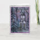 Oh iglesia hermosa engullida en los cristales de la nieve que soplan, cómo usted brilla intensamente en la nieve del invierno. Tarjeta de felicitación original del arte de la aguja de Snowscape de Katt Yanda.
