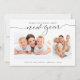 Características del este diseño del día de fiesta las palabras "Año Nuevo" en una escritura negra moderna con dos de sus fotos y saludo preferidos debajo