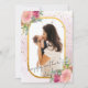 Tarjeta de felicitación floral de acuarela con una foto única de tu mamá. Corazones brillantes con purpurina, dorado real y rosa. 'Feliz Día de la Madre' está escrito en estilo caligráfico casi como si estuviera escrito con un bolígrafo en papel.