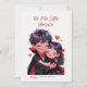Una adorable pareja de vampiros chibi para el Día de San Valentín: el pequeño vampiro con capa abrazando a su novia con lazo rojo y calcetines a rayas.