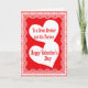 Una tarjeta roja con los corazones blancos y el cordón arreglan para un gran hermano y su socio