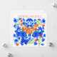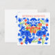 Conejos en finería Delft azul entre los Tulipanes de primavera. De los ilustraciones de Artes Anni dibujados a mano y pintados. Personaliza tu saludo.