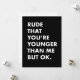 Esta es una tarjeta de cumpleaños divertida - grosero que tu tarjeta sea más joven que yo