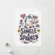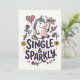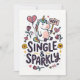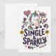 Una tarjeta de saludo ligera que presenta un unicornio determinado sosteniendo un letrero de "no" rodeado de corazones juguetones, flechas y rosas. La frase Soltera y Brillante añade un tono confiado y humorístico que celebra la independencia con un toque de fantasía.