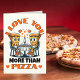 Comparte un poco de humor y amor este Día de San Valentín con nuestra tarjeta de San Valentín "Te amo más que pizza". Con una divertida ilustración de dibujos animados de dos personas en forma de pizza disfrutando de una cena a la luz de las velas (¡de más pizza!), esta tarjeta es perfecta para los amantes de la pizza con sentido del humor. El diseño lindo y divertido combina el amor y las risas con un toque peculiar de pizza. El texto en el interior dice: "¡Eres el único que puede robar un trozo de mi corazón! (Pero no toques mi pizza)". Ya sea para tu pareja, mejor amigo o un entusiasta de la pizza, esta tarjeta es una forma encantadora de decir "¡Te amo!". Edita el texto de la página del producto o cambia el estilo o color de la fuente con la herramienta de diseño.
