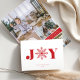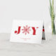 Las características tipografía-basadas festivas "ALEGRÍA" de la tarjeta de Navidad en el frente en letras rojas vibrantes del retro-estilo con un copo de nieve que substituye el "O." añaden cuatro fotos de familia preferidas al interior en una disposición del collage, y las personalizan con un mensaje y una firma de encargo.