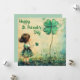 Una tarjeta dulce del día de San Patricio que presenta a una joven mirando un trébol de cuatro hojas. La parte delantera dice; Feliz día de San Patricio. La parte trasera dice: Para ti. Esta es una tarjeta plana de dos caras.