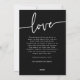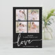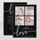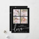 Tarjeta El día de San Valentín en blanco y negro. Elegante y elegante, esta tarjeta El día de San Valentín presenta un collage de fotos o 4 fotos familiares con "amor" en un moderno guión de caligrafía escrita a mano sobre fondo negro. La parte posterior de la tarjeta incluye texto para agregar un mensaje personal.