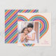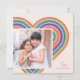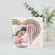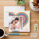 Un corazón arcoíris colorido crea el marco perfecto en esta original y moderna tarjeta de fotos El día de San Valentín. Un saludo sencillo en la esquina completa el diseño. La parte posterior de la tarjeta presenta un patrón de coordinación de rayas rojas, rosas, azules, amarillas y verdes.