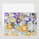 Deleite al amante de Halloween en su vida con esta tarjeta de la temporada espeluznante. También podría exhibirla como arte en su paraíso gótico. Diseñé esta tarjeta utilizando mi creación original de acuarela y pluma de tinta. Representa GATOS FANTASMAS y CALABAZAS y una luna creciente gruñona entre caramelos de maíz y hojas de otoño. ¡Incluso muestra una tetera a rayas de Halloween y bebidas de café!