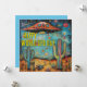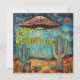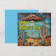 Una tarjeta Happy UFO Day (Día del OVNI feliz) con un caprichoso OVNI/UAP sobre un desierto. El frente dice: Feliz Día Mundial del OVNI. La parte trasera dice: ¡Existe la UAP!