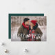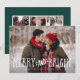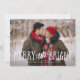 La tarjeta festiva de la foto del día de fiesta ofrece su horizontal preferido o ajardina la foto orientada en el corrimiento completo, con "feliz y brillante" sobrepuesto en letras manuscritas blancas caprichosas. Personalice el frente de la tarjeta con sus nombres y el año, y añada seis fotos adicionales a la parte posterior en una disposición del collage en un fondo verde oscuro, junto con un mensaje personal de encargo.