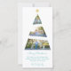 El adorno clásico del día de fiesta del árbol de navidad consigue una torsión moderna en esta tres-foto la tarjeta amistosa a flaca y del presupuesto del formato del día de fiesta que es limpia y simple con el texto personalizado escribir su propio mensaje de la alegría del día de fiesta.