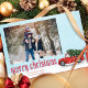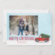 Una fantástica escena de invierno de un camión rojo vintage que regresa del bosque o del árbol de Navidad con el árbol de Navidad de este año en la nieve. Esta linda tarjeta de fotos de Navidad mostraba un camión rojo rústico en la parte trasera y una plantilla de fotos con todo tipo de sangre en la parte delantera, perfecta para cualquier foto familiar. Navidades foto de camioneta roja vintage, simple y alegre color de agua dulce navideña, sangre completa 1 foto, rústico limpio, moderno tradicional, clásico bosque de granja, caída de la nieve caprichosa mínima, camioneta roja de color de agua, simple foto familiar, con nieve cayendo en escena de invierno, foto de Navidades de vacaciones tarjeta de saludo.