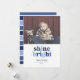 Esta divertida tarjeta Hanukkah muestra las palabras brillando en letras multicolores con espacio para una sola foto. La parte posterior tiene un patrón de rayas coincidente.