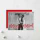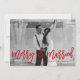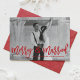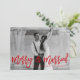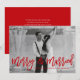 Difundir alegría por vacaciones con esta elegante tarjeta de vacaciones de boda. Esta tarjeta plana presenta el guión rojo con letras a mano "alegre y casado" con un fondo de nieve rojo y blanco. La tarjeta de vacaciones perfecta para recién casados. Hay una tarjeta postal y una versión plegada disponibles.