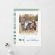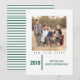 Moda minimalista Tarjeta fotográfica de Año Nuevo con un diseño de línea geométrica fresca y moderna en verde. Sencillas rayas verdes finas adornan la parte posterior de esta tarjeta plana. Añadir una foto y un saludo personalizado al personalizar. Fotografía © Storytree Studios, Stanford, CA