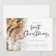 Tarjeta fotográfica de Personalizado de Navidad para bebé moderno. Disponible digitalmente e impreso. Encantador de celebrar la primera Navidad de tu bebé. Un guión juego para la Primera Navidad y el resto del texto es fácil de personalizar. Reemplace la foto de ejemplo con la suya propia. Una capa superpuesta de gradiente está encima de la foto, por lo que se desvanece al llegar al centro con el texto parcialmente colocado sobre la parte superior.