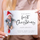 Tarjeta fotográfica de Personalizado de Navidad para bebé moderno. Disponible digitalmente e impreso. Encantador de celebrar la primera Navidad de tu bebé. Un guión juego para la Primera Navidad y el resto del texto es fácil de personalizar. Reemplace la foto de ejemplo con la suya propia. Una capa superpuesta de gradiente está encima de la foto, por lo que se desvanece al llegar al centro con el texto parcialmente colocado sobre la parte superior.