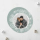 Un acogedor diseño de tarjetas de vacaciones de invierno con bonitos vibraciones, con tu foto cuadrada favorita en forma de bola de nieve, ambientado en medio de una ráfaga de copos de nieve de Navidades blancos sobre un fondo verde fresco de moda. "Nieve muy dulce" aparece en la parte trasera con letras retro, junto con tu saludo de vacaciones personalizado, nombre familiar y el año.