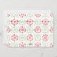 Patrón de copos de nieve verdes y rojos en la parte trasera de esta tarjeta de foto, con sólo una fila de copos de nieve verde claro superponiendo la foto en la parte delantera.