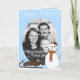 Envíe sus cálidos deseos de vacaciones a todos sus seres queridos con esta alegre y brillante tarjeta de saludo de vacaciones de nieve. Utilice la plantilla de texto para insertar una foto, cambie el saludo si lo desea e inserte su nombre. La tarjeta de felicitación tiene un fondo azul intenso y nevado, con un trinquete de madera y un muñeco de nieve