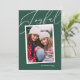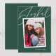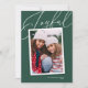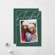 Esta moderna y elegante tarjeta fotográfica navideña presenta un hermoso fondo verde oscuro con "Joyful" en escritura caligráfica blanca y una foto. Este diseño se adapta a una sola foto vertical en la parte delantera de la tarjeta. En el reverso está el mismo fondo verde, al que se puede añadir otra foto y/o texto adicional seleccionando la opción "editar usando herramienta de diseño".