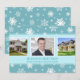 Tarjeta fotográfica de los navidades de la temporada de Greetings personalizable realtor con un elegante y contemporáneo verde azulado acuá turquesa azul turquesa y blanco estampado de copos de nieve. Añade tu foto y texto personalizado a esta tarjeta para crear un navidad único que saluda esta temporada de vacaciones para tus clientes.