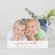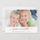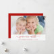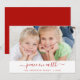 Navidades de la Paz en la Tierra Familia con Niños Festividad Carta con Escritura Letrada Tarjeta fotográfica Roja y Blanca. La foto y el texto de esta escritura tipográfica escrita a mano se pueden actualizar y personalizar con tu foto y nombre de familia.