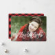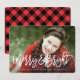 ¡Envíen vítores de vacaciones con una tarjeta de foto personalizado! Este diseño estacional de tarjeta fotográfica presenta una imagen de purga completa con una cubierta con letras de la mano y un cómodo patrón de manto de búfalo en la parte posterior.