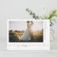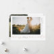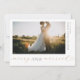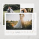¡Esta tarjeta de vacaciones de moda es perfecta para los recién casados! Presenta una sola foto acentuada por la frase "Merry And Married" en un guión elegante con corazón. Los nombres de la pareja y la fecha del boda se sientan a la derecha de la foto en esta disposición moderna. La parte trasera tiene espacio para dos fotos adicionales y mensajes de vacaciones.