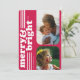 Destacar entre la multitud con esta tarjeta de vacaciones única con un brillante fondo magenta con un tipo de inspiración retro que dice "Merry & Bright", que acentúa dos fotos con esquinas redondeadas. La parte trasera tiene una foto adicional y espacio para un mensaje más largo.