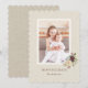 Tarjeta de foto de vacaciones rústicas con ramo floral de invierno y fondo de tela burlap falso.