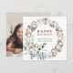Festiva Tarjeta fotográfica de flor de algodón Wreath Happ