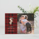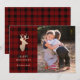 Un clásico estilo de verificación de búfalos rojos y negros, la manta, se siente cálida y acogedora como una manta de lana en una fría noche de invierno. La silueta de la cabeza de ciervo dorado en un falso Relieve metalizado aporta un toque moderno de brillo para una sensación de temporada y festiva. Borra la capa trasera con patrones y escribe tu propio mensaje de alegría navideña. Fotografía de Storytree Studios, Stanford, CA