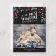 Un diseño moderno de bonita tipografía que dice "es la época más maravillosa del año" y está adornado con brotes de flora estacional. Cuenta con una gran foto de su feliz familia en la parte delantera. Espacio en la parte posterior para que añadas tu mensaje personal de vacaciones o más fotos si lo deseas. Una hermosa tarjeta contemporánea para cualquier saludo de vacaciones.