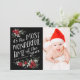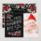Un diseño moderno de encantadora tipografía que dice "es la época más maravillosa del año" y está adornado con un borde de flores y vegetación de bonitos. Espacio en la parte trasera para que añadas tu mensaje personal de vacaciones o más fotos si lo deseas. Una hermosa tarjeta contemporánea para cualquier saludo de vacaciones.