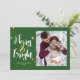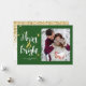Una hermosa tarjeta fotográfica con pequeños puntos que componen un patrón de apariencia purpurina, y "Merry & Bright" en un precioso guión dibujado a mano, la ampersand adornaba con una textura dorada. Simplemente agrega tu propia foto, y personalizar el nombre y el año delante de la tarjeta! Hay un marco verde alrededor de la foto, de modo que cualquier imagen de tamaño que pongas en ella será enmarcada. La parte trasera de la tarjeta está llena de hermosos puntos de Relieve metalizado dorado.