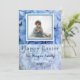 Tarjeta fotográfica Happy Easter, opción imprimible / descargable, tarjeta fotográfica plana, bonito diseño floral, flores azules. ¡Personalizable. Puedes personalizar con tu propia foto. La "Pascua feliz" es editable, "La familia Morgan" es editable, y "2023" también es editable. Esta es una dulce tarjeta de Pascua que puedes mandar a tu familia y amigos.