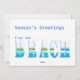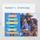 ¡No todos sueñan con un Navidad blanco y nevado, algunos sueñan con un sol cálido y playas de arena! si prefieres pasar el tiempo tomando el sol en vez de palear la nieve, esta es una gran tarjeta alternativa de Navidades para ti. Con el letrero de la playa se recibe "Feliz Navidad y un feliz año nuevo" y luego simplemente se agrega tu nombre.