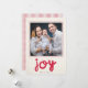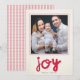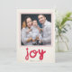 Una moderna y caprichosa tarjeta de felicitación vacacional con la palabra "JOY" en negrita, de color rojo con un divertido patrón rojo y blanco. Personalizar con tu propia foto. La mayoría de los elementos/tipos de diseño se pueden mover/cambiar/eliminar según su elección/preferencia. Contáctame en sika_273@yahoo.com si quieres la tarjeta en un color o tamaño diferente. ¡Gracias por navegar!