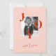 Sumérjase en un mundo de encanto minimalista y alegría vibrante con este encantador diseño de tarjetas de vacaciones. Con un fondo de melocotón claro, la foto de tu personalizado brilla al frente, capturando un momento apreciado que encarna el espíritu de la temporada. Grandes letras mayúsculas, alegres y audaces, forman la palabra "Alegría" y rodean la foto. Las coloridas cartas bailan alegremente, invitando a los destinatarios a abrazar la alegría y la emoción de la temporada navideña.