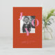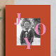 Sumérjase en un mundo de encanto minimalista y alegría vibrante con este encantador diseño de tarjetas de vacaciones. Con un fondo rojo, la foto de tu personalizado brilla al frente, capturando un momento apreciado que encarna el espíritu de la temporada. Grandes letras mayúsculas, alegres y audaces, forman la palabra "Alegría" y rodean la foto. Las coloridas cartas bailan alegremente, invitando a los destinatarios a abrazar la alegría y la emoción de la temporada navideña.
