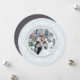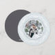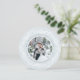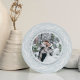 Elegante tarjeta fotográfica de vacaciones recién casada en una forma redonda única presenta una foto favorita sobre un fondo gris rico, rodeada por una corona de follaje blanco sobre un fondo azul de hielo pálido. Personaliza con un saludo de vacaciones personalizado (mostrado con "ten un Navidad casado"), tus nombres y el año. Perfecto para compartir una foto boda en su primera Navidad como Sr. ¡Y la Sra.!