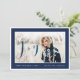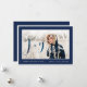 Celebra la época mágica y festiva de las fiestas con nuestras tarjetas de fotos personalizados. Nuestro moderno y elegante diseño de vacaciones cuenta con un moderno y minimalista borde azul marino y blanco que enmarca maravillosamente el gran fotomarcador. Una elegante escritura de escritura a mano "Joy" se coloca encima de la foto es azul para agregar un aspecto limpio y elegante a este diseño elegante, minimalista y moderno de tarjetas de fotos de vacaciones. Se puede personalizar el tamaño del texto, el color del texto, el tipo de letra y la disposición de su preferencia de diseño personal