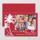Esta tarjeta de vacaciones presenta una escena tropical con pequeñas estrellas blancas y una silueta de palmeras que se doblan en la brisa. Tres ventanales con tus fotos familiares favoritas lo hacen tuyo.