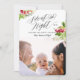 Tarjeta fotográfica de noche silenciosa. Con un elegante guión de moda y hermosas acuarelas florales festivas, estas tarjetas de fotos navideñas seguramente se adaptarán a su estilo esta temporada navideña.