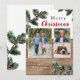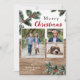 Tarjeta fotográfica de vacaciones para Navidades de madera rústica, nieve y vegetación invernal. ¡Fácilmente personalizado con sus fotos y nombres! Se puede agregar texto adicional en el reverso.