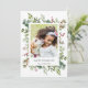 Envíe vítores de vacaciones a su familia y amigos. Esta tarjeta de vacaciones incluye bayas pintadas de color rojo, ramas de pino, eucalipto y hojas verdes con las palabras "Felices Fiestas". Personalizar esto cambiando la imagen con tu propia foto y texto.